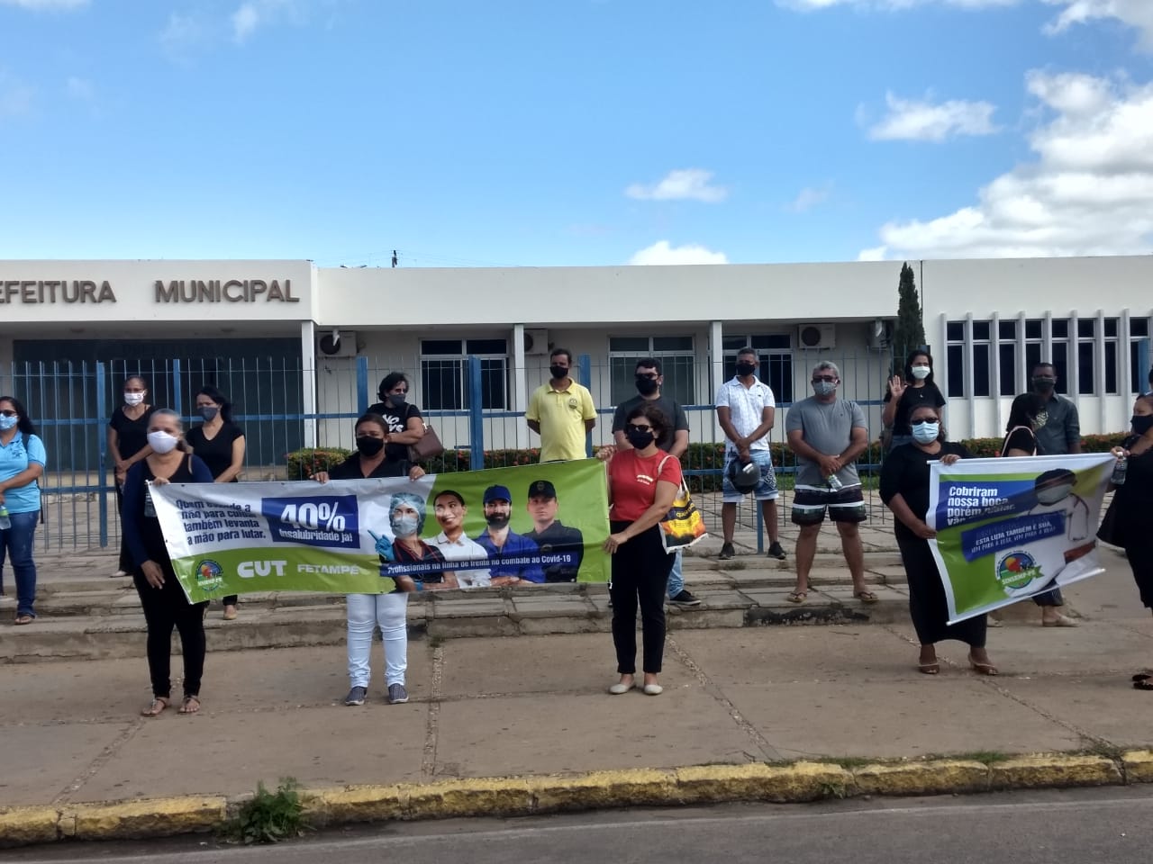 Aconteceu nessa sexta-feira (17) a manifestação conhecida como “Insalubridade Já!”, organizado pelo do Sindicato dos Servidores municipais (SINSEMP), filiado à CUT e FETAMPE, e Sindicato Intermunicipal dos Agentes de Saúde (SINDRAS) contou com profissionais da saúde, segurança e serviços urbanos, linha de frente no combate ao Coronavírus no município.