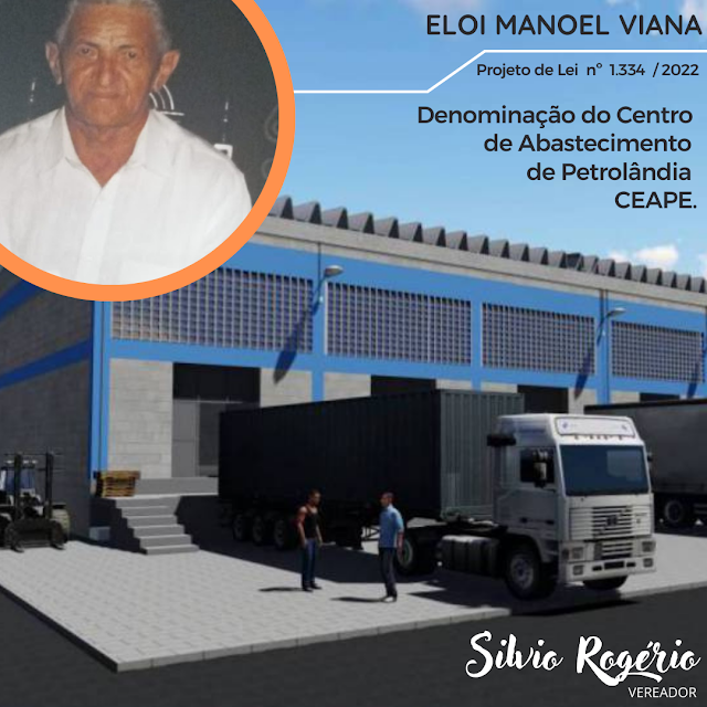 O Vereador Silvio Rogério (SD) teve aprovação junto aos demais Vereadores do Projeto de Lei de n° 1.33/2022, que tem por finalidade denominação de Eloi Manoel Viana no futuro Centro de Abastecimento de Petrolândia-CEAPE.
