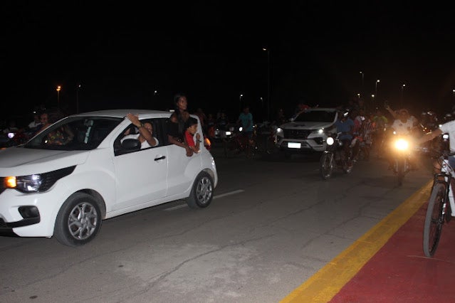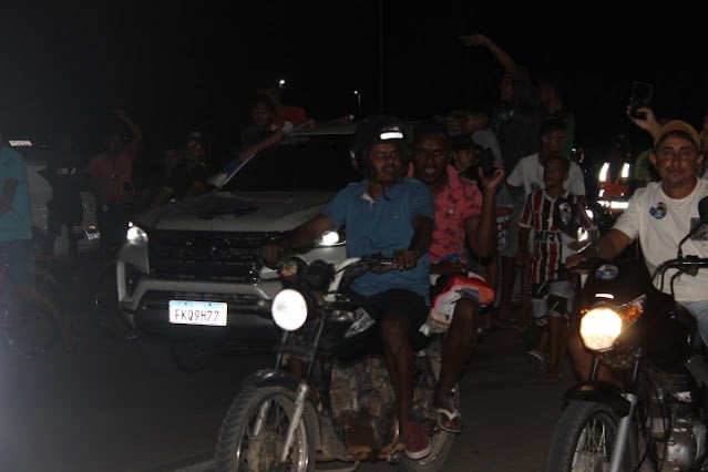 Uma carreta com vários apoiadores acompanharam o candidato que veio acompanhado de Tõe filho do Tiringa, destacou sua alegria de sido recepcionado na cidade por uma multidão: