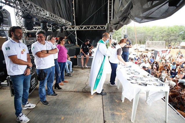 “Participando da 8ª Missa do Vaqueiro do distrito Icó-Mandantes, em Petrolândia, ao lado do prefeito Fabiano Marques e do vice-prefeito Rogério Novaes. Uma tradicional manifestação da cultura sertaneja que faço questão de estar presente, valorizando e apoiando. Vaqueiros de toda a região. Muita cultura e fé. Parabéns aos que fazem desta tradição um bonito evento”, destacou Rodrigo.