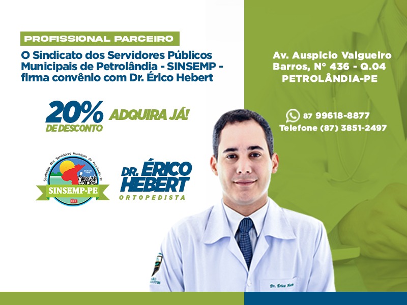 Sindicato dos Servidores Públicos Municipais de Petrolândia – SINSEMP/PE – firma convênio com Dr. Érico Herbert (Ortopedista); acompanhe!