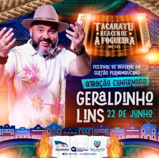 Geraldinho Lins é a primeira atração confirmada do nosso Festival de Inverno do Sertão Pernambucano. O show acontecerá no dia 22 de junho.