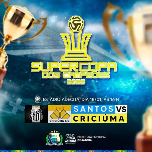 A emoção do futebol promete tomar conta de Jatobá-PE! No próximo dia 18 de janeiro, às 16h, o Estádio Adecita será palco da grande Supercopa dos Campeões 2025, que trará o confronto épico entre as equipes Santos e Criciúma.