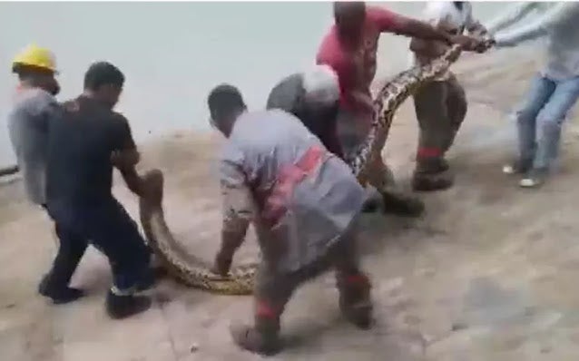 Foi necessária uma força-tarefa, com nove homens, para retirar a cobra do local, devido ao tamanho e ao peso. Como o animal aparentava estar, bem, eles fizeram a soltura por conta própria, nas águas do Rio de Contas. Ninguém ficou ferido na ação.