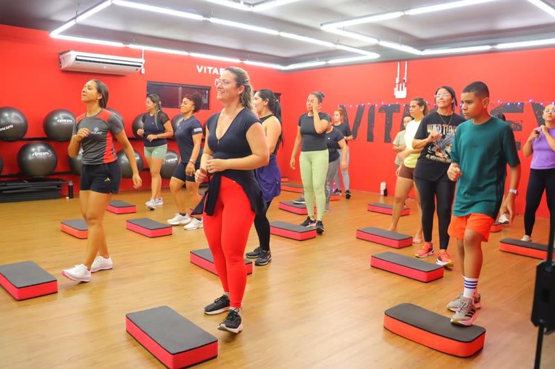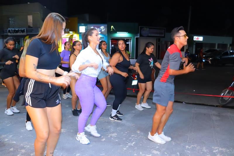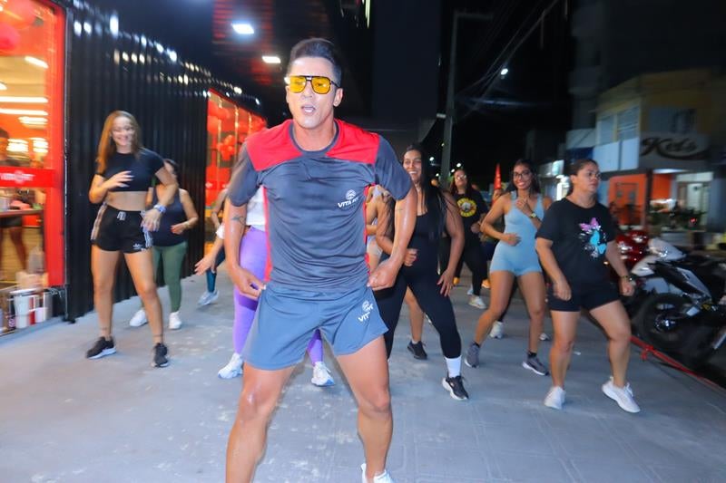 A programação contou com um super aulão de dança comandado pelo professor Vilson Lima, que animou o público em uma atividade realizada em frente à academia, proporcionando um momento de integração, saúde e muita descontração.